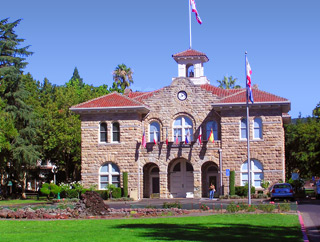 In the middle of the plaza, Sonoma’s City Hall was designed with four identical sides, so as not to offend the storeowners on any side of the plaza. Now that is a democratic approach to city planning!