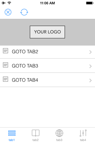 This is a basic blank template with no content. All pages are blank with no content. First page has menu items. Choose another template to select a started app with more initial content.