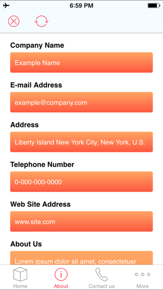 Create an application with a Tracking option, build-in Calendar, About Us and Form pages.