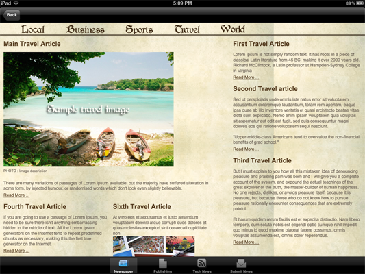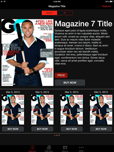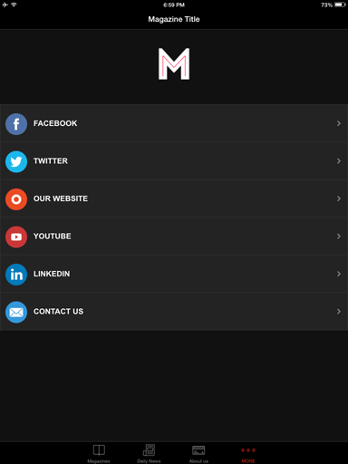 Sell magazines using In App Purchase on iPad. Publish new magazines by uploading a new .PDF or .EPUB file. New publications will automatically sync with all devices. (No update necessary)