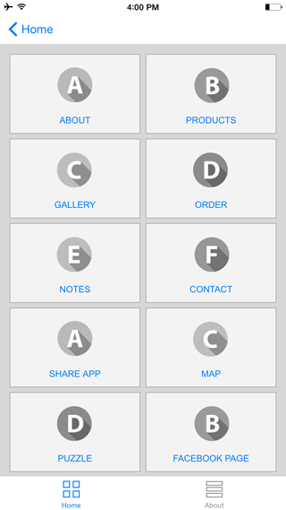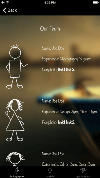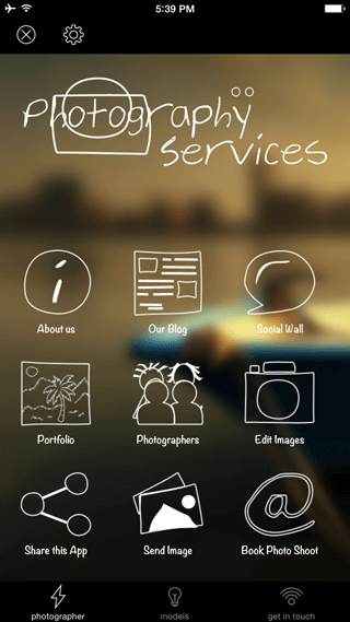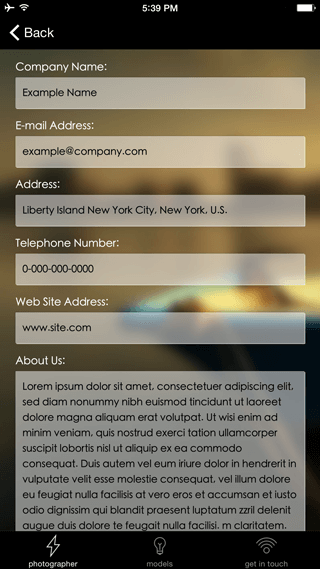 This template is a perfect example of how you can build and design an iPhone application to showcase your writing, design and photography skills. This template makes use of the Mosaic Type page to present the artwork of any photographer/designer in a unique interactive mobile experience.