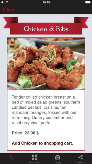 Your restaurant's menu, picture gallery, reviews and rezervations. Order food delivery from the app.